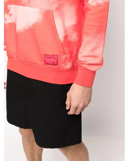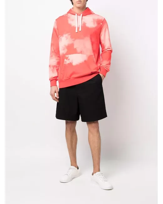 coral-red organic cotton all-over graphic print classic hood long sleeves pullover design
