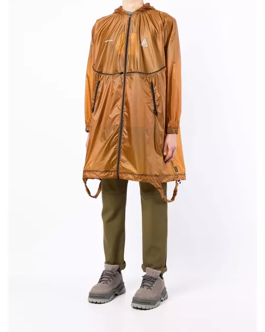 brown logo print to the front long sleeves elasticated cuffs classic hood mid-length two side zip-fastening pockets front zip fastening
