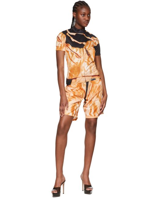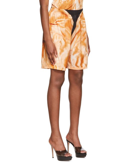 Polyester mesh shorts. · Concealed drawstring at elasticized waistband · Graphic printed throughout Supplier color: Golden silk print