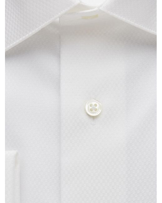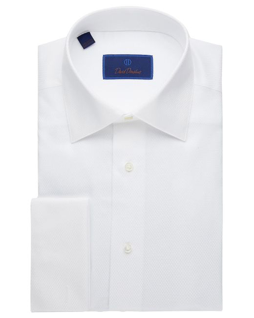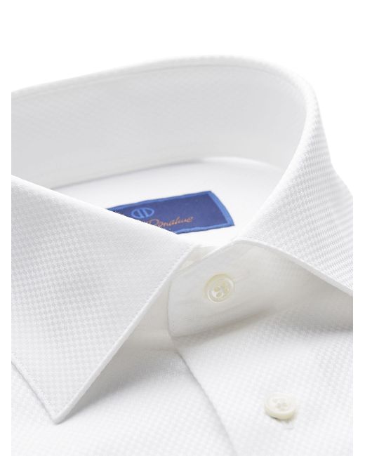 This dress shirt features a point collar, button-front closures, and long sleeves. Point collar Button-front closure Removable button placket Two back pleats Long sleeves 100% cotton Machine wash Imported SIZE & FIT About 27" from shoulder to hem. Men Luxury Coll - Formal Accessories > David Donahue > Saks Fifth Avenue > Barneys. David Donahue. Color: White. Size: 17.5.