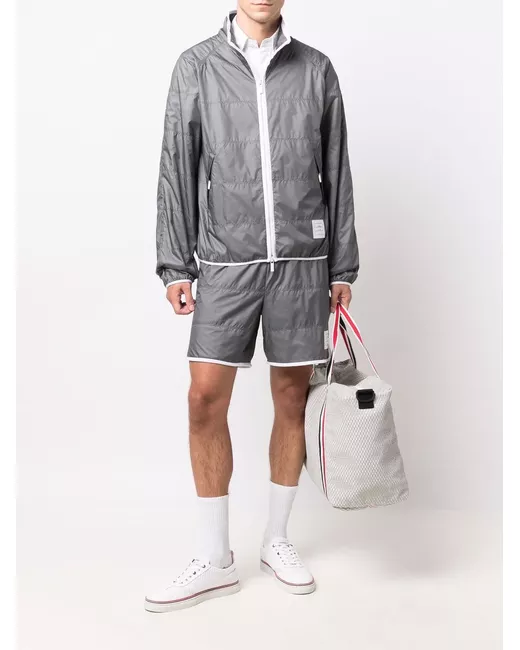 grey signature grosgrain loop tab logo patch to the side contrasting trim elasticated drawstring waistband rear flap pocket