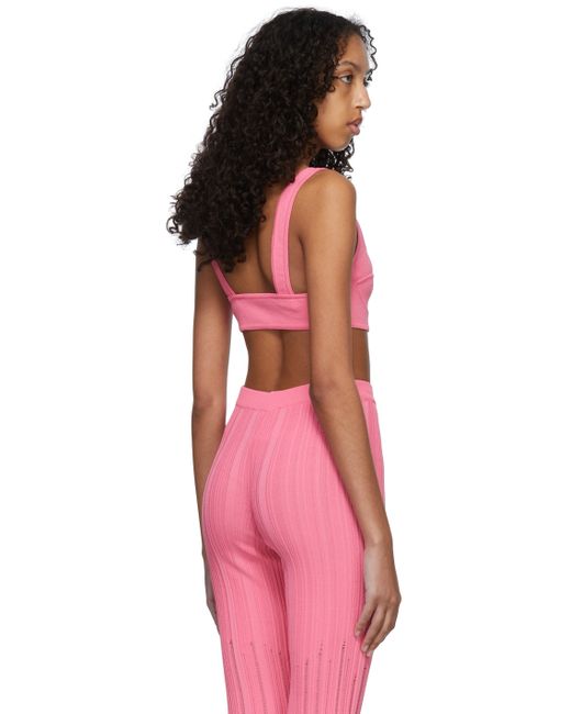 Knit viscose and nylon-blend bra. Square neck. Supplier color: Fuxia