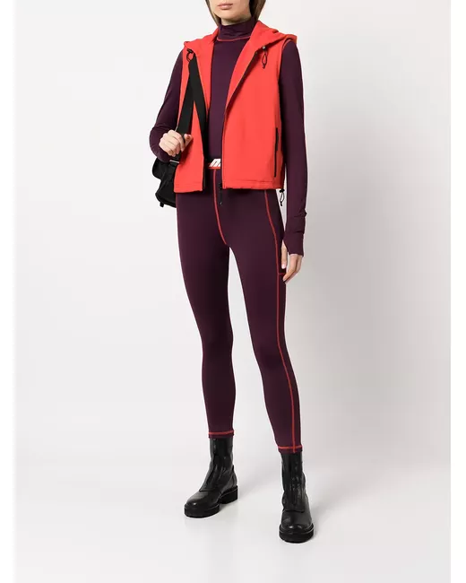 red two side zip-fastening pockets front zip fastening classic hood sleeveless straight hem stretch-design