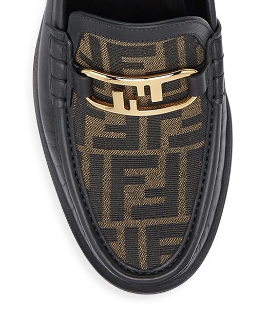 An FF Logo jacquard upper defines these Fendi O'Lock loafers, finished with an O'lock buckle. Leather/fabric upper Round toe Slip-on style Leather lining Leather sole Made in Italy ABOUT THE BRAND The epitome of fine Italian craftsmanship, Fendi was founded in Rome in 1925 by Adele and Edoardo Fendi. Today, the founders' granddaughter and Creative Director, Silvia Venturini Fendi, continues the house's emphasis on tradition, experimentation and creativity. Men's Shoes - Designer Shoes > Fendi > Saks Fifth Avenue > Barneys. Fendi. Color: Tabacco. Size: 9.