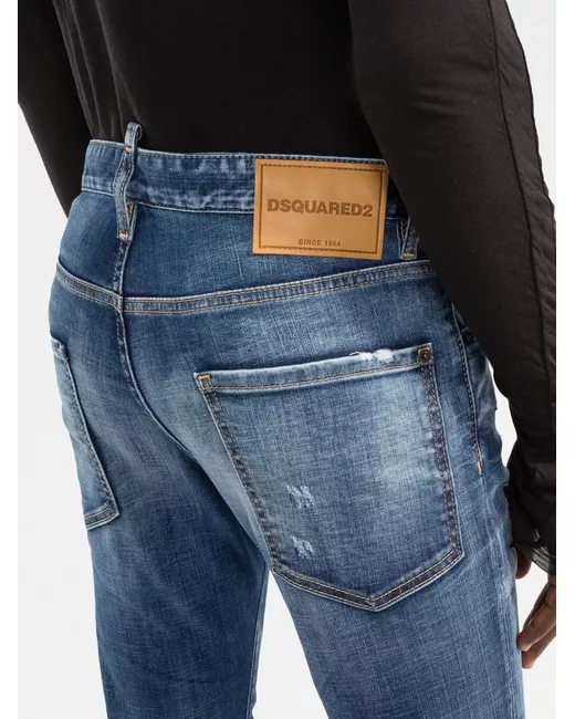 blue stretch-cotton stonewashed distressed finish logo patch to the rear classic five pockets belt loops