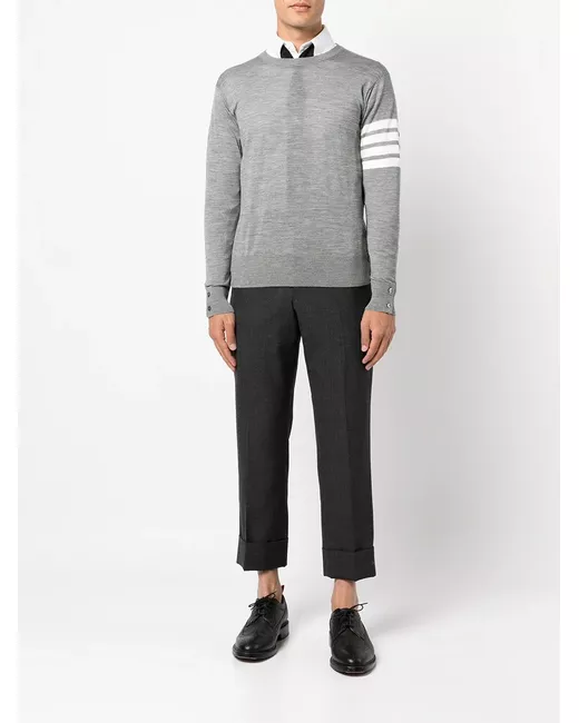 light grey wool knitted construction crew neck signature 4-Bar stripe long sleeves ribbed cuffs and hem RWB stripe