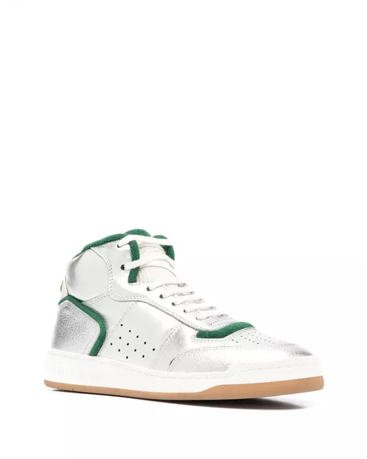 white/green leather/fabric/rubber logo patch at the tongue colour-block panelled design round toe front lace-up fastening flat rubber sole