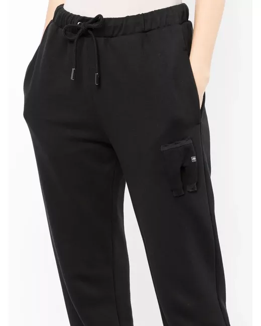 black cotton drawstring fastening waist side pouch pockets elasticated ankles