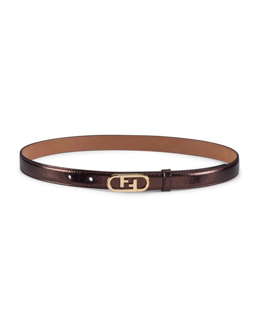 This metallic leather belt is finished with an oval FF logo buckle. Adjustable buckle Goldtone hardware Leather Made in Italy SIZE Width, 0.75" ABOUT THE BRAND The epitome of elegance and fine craftsmanship, Fendi was founded in 1925 in Rome by Adele and Edoardo Fendi. Today, the founders' granddaughter and Creative Director, Silvia Venturini Fendi, continues the house's emphasis on quality, tradition, experimentation and creativity. Soft Accessories - Belts > Fendi > Saks Fifth Avenue > Barneys. Fendi. Color: Moro. Size: Medium.