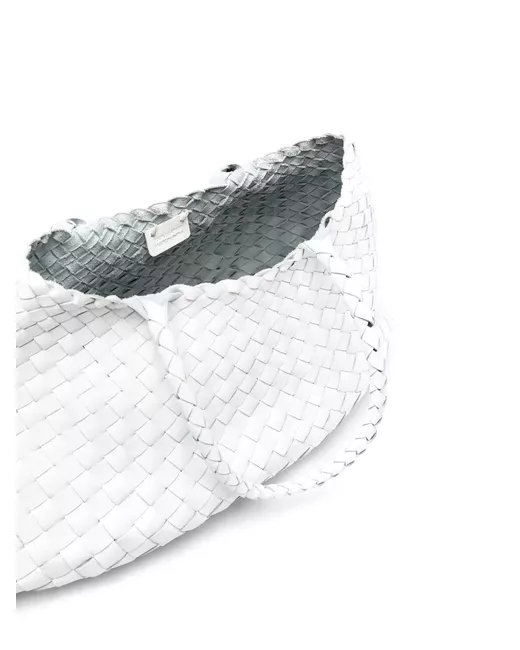 Santa Croce interwoven leather tote bag from DRAGON DIFFUSION featuring white, leather, interwoven design, two rounded top handles, trapeze body, magnetic fastening and main compartment.