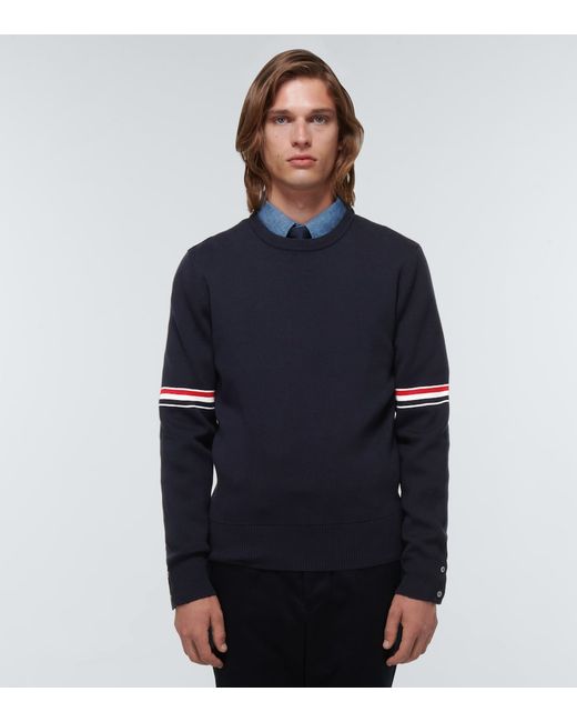 This crewneck sweater from Thom Browne is knitted from pure cotton yarn.