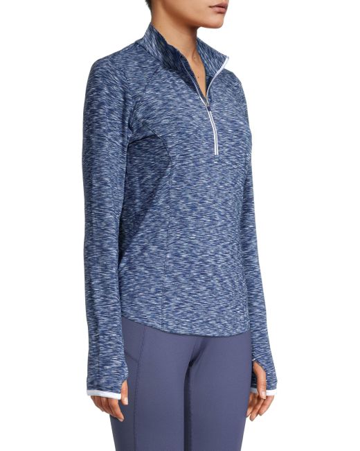 Zero Restriction's Shae half-zip pullover top features a funnel neck and long sleeves with thumb holes. Funnel neck Long sleeves Half-zip front 88% polyester/12% spandex Machine wash Imported SIZE & FIT About 23" from shoulder to hem Model measurements: 5'10" tall Model is wearing a US size Small. Modern Collections - Becken > Zero Restriction > Saks Fifth Avenue > Barneys. Zero Restriction. Color: Storm. Size: Large.