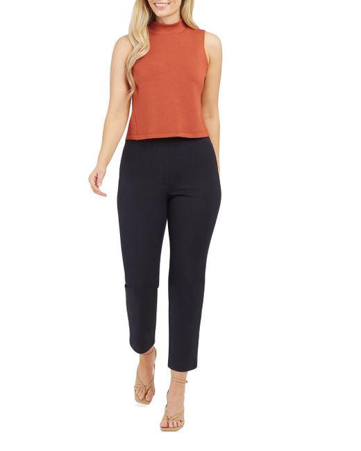 The Polished slim fit pants are crafted of stretch cotton in an ankle length. Flat front Back patch pockets Pull-on style 53% cotton/41% rayon/6% elastane Machine wash Imported SIZE & FIT Inseam, about 28" Model measurements: 5'10" tall Model is wearing a US size Small. Lingerie - Spanx > Spanx > Saks Fifth Avenue > Barneys. Spanx. Color: Classic Navy. Size: Small.