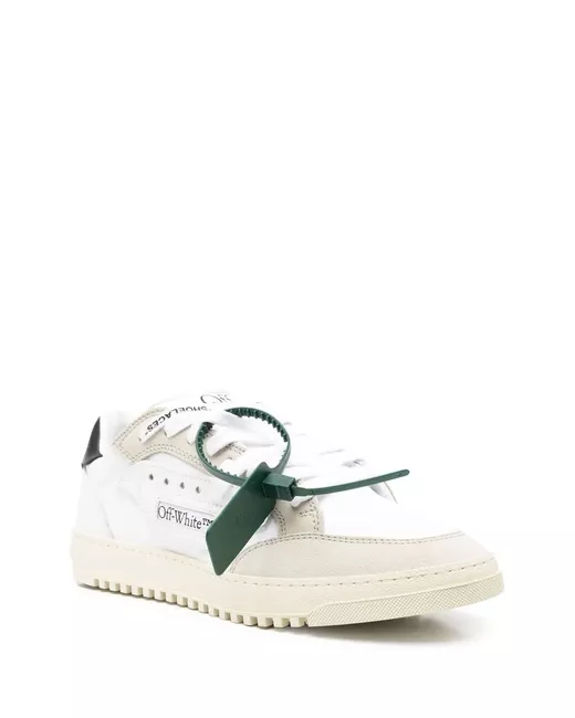 5.0 low-top sneakers from OFF-WHITE featuring white, leather, panelled design, logo patch to the side, signature Zip Tie tag, round toe, front lace-up fastening and flat rubber sole.
