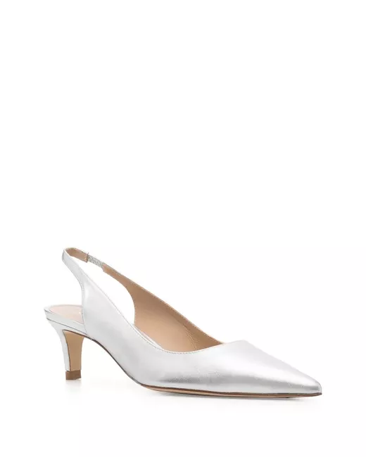 metallic-effect leather pumps from STUART WEITZMAN featuring silver, calf leather, leather lining, metallic effect, pointed toe, slingback strap and low heel.
