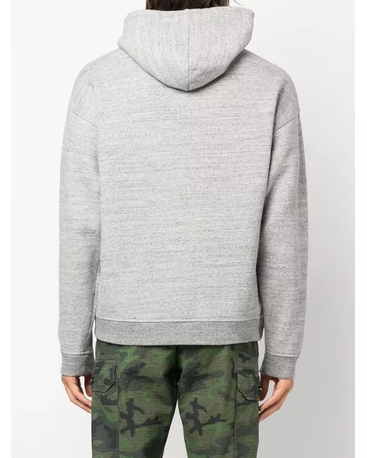 grey cotton jersey fleece logo print to the front drawstring hood slip pocket to the front long sleeves straight hem