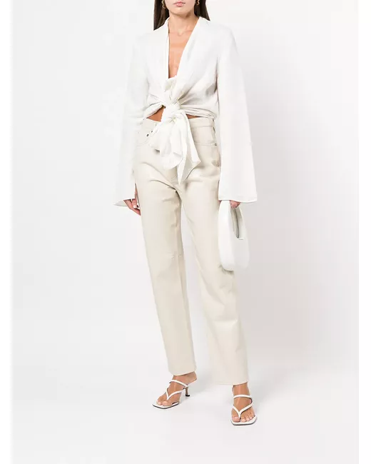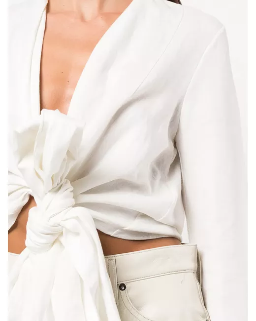 ivory white linen blend V-neck wrap design long sleeves cropped