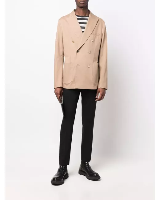camel brown cotton blend double-breasted button fastening classic lapels long sleeves two side patch pockets