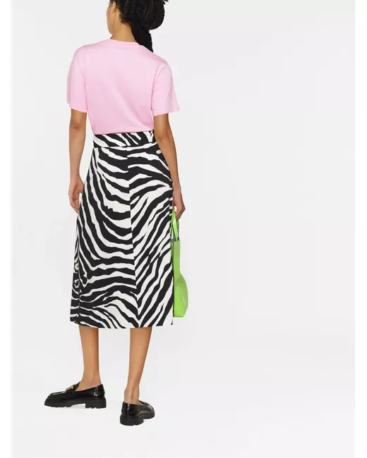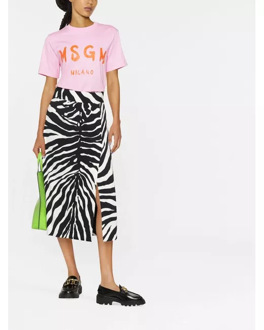 logo-print cotton T-shirt from MSGM featuring light pink, cotton, logo print to the front, crew neck, short sleeves and straight hem.