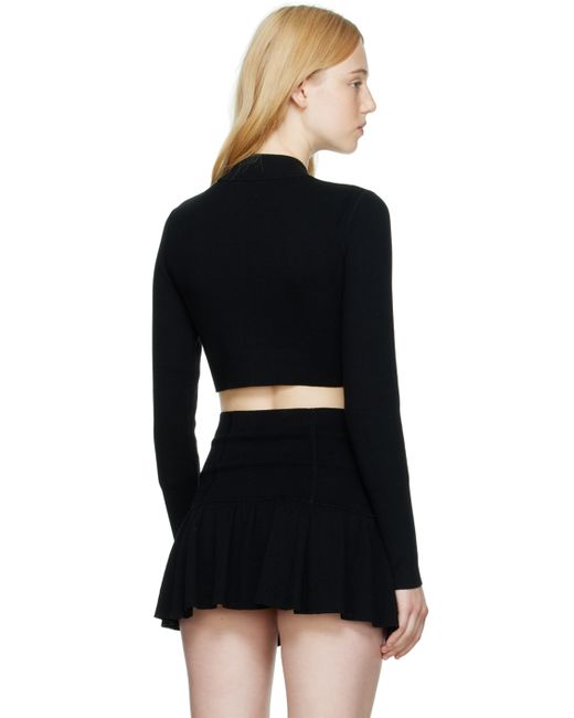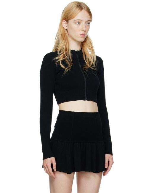 Knit stretch lyocell, recycled polyester, and silk-blend sweater. · Rib knit crewneck, cuffs, and hem · Zip closure Supplier color: Black