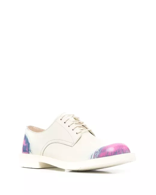 white/multicolour leather contrasting toecap front lace-up fastening round toe