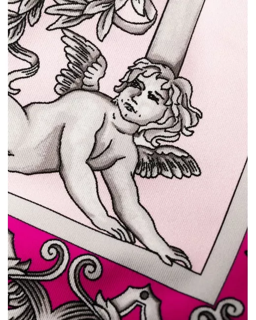 Silver Baroque-print leggings from VERSACE featuring fuchsia pink, off-white, stretch-design, signature Barocco print, high waist and ankle-length.