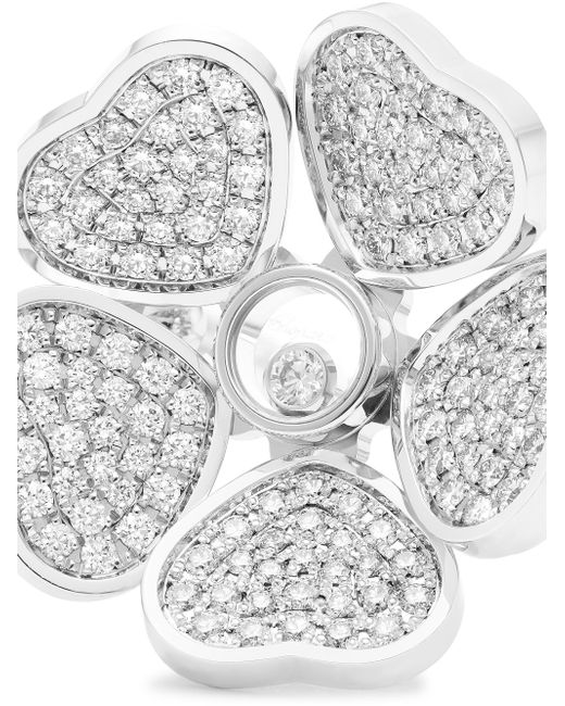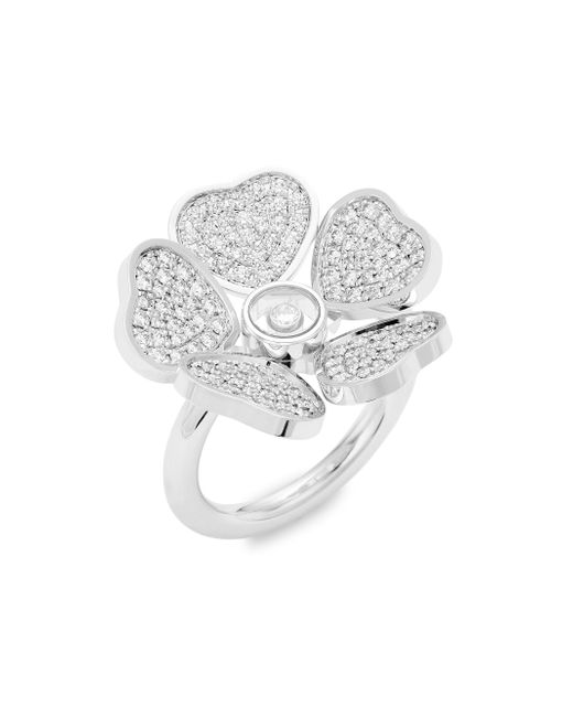 From the Happy Hearts Collection. Showcasing diamond-encrusted heart-shaped petals, Chopard's exquisite flower ring features a center round white diamond that freely moves between two sapphire crystals. This stunning piece captures the storied label's timeless, glamorous aesthetic. Diamonds, 1.01 tcw 18K white gold Made in Germany ABOUT THE BRAND In 1860, artisan watchmaker Louis-Ulysse Chopard founded the renowned jewelry brand in Sonvilier, Switzerland. The company is known for its legendary Swiss watches and classic high fine jewelry designed to last a lifetime. Fine Jewelry - Chopard Watches And Jewe > Chopard > Saks Fifth Avenue > Barneys. Chopard. Size: 6.