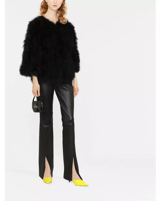 black turkey feather round neck concealed front fastening three-quarter length sleeves