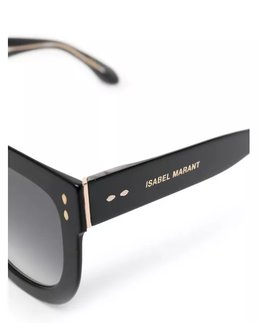 round-frame sunglasses from Isabel Marant Eyewear featuring jet black, acetate, gold-tone hardware, gold-tone logo lettering, D-frame, grey tinted lenses, nose pads, straight arms and UV-protective lenses. These glasses come with a protective case..