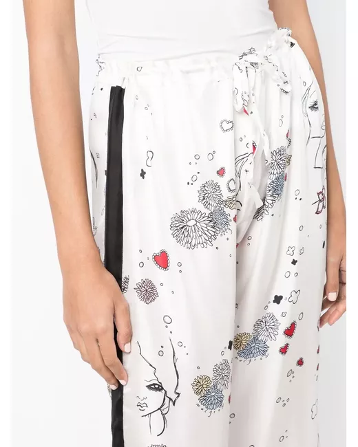 white/black/red silk all-over print side stripe detailing elasticated drawstring waistband wide leg