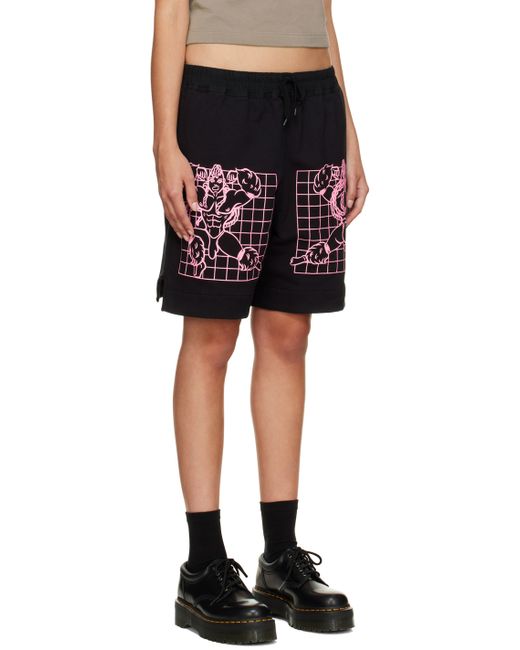 Stretch French terry shorts. · Drawstring at elasticized waistband · Four-pocket styling · Graphic printed at front · Vented outseams Supplier color: Black