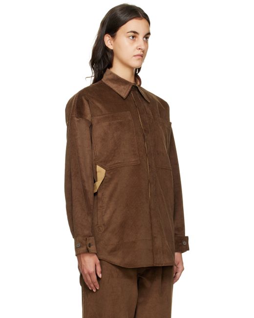 Stretch cotton corduroy shirt. · Spread collar · Concealed button closure · Patch pockets and welt pockets · Adjustable single-button barrel cuffs · Graphic embroidered at back · Droptail hem · Black hardware Supplier color: Brown