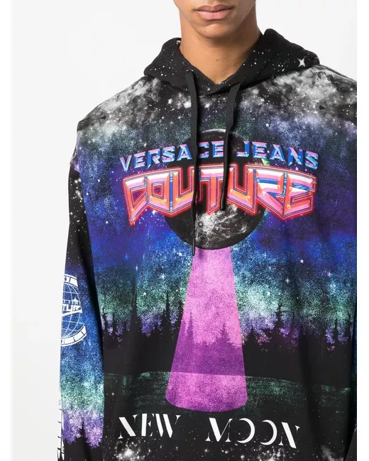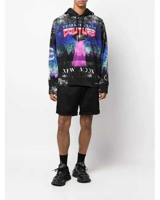 black/multicolour cotton all-over graphic print logo print to the front logo print at the sleeve text print drawstring hood long sleeves straight hem