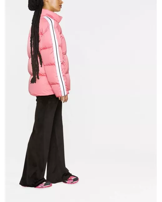 light pink/white/black down-feather filling side stripe detailing logo print to the front stand-up collar front zip fastening long sleeves