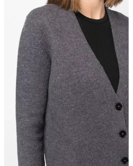 charcoal grey wool ribbed detailing V-neck front button fastening long sleeves