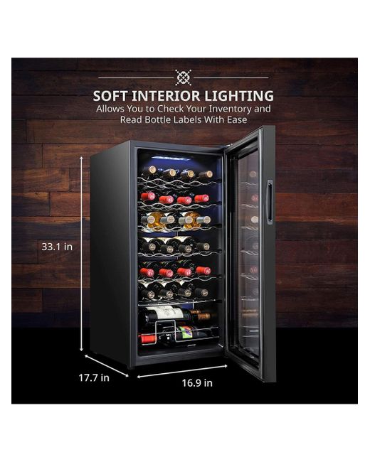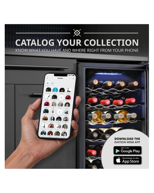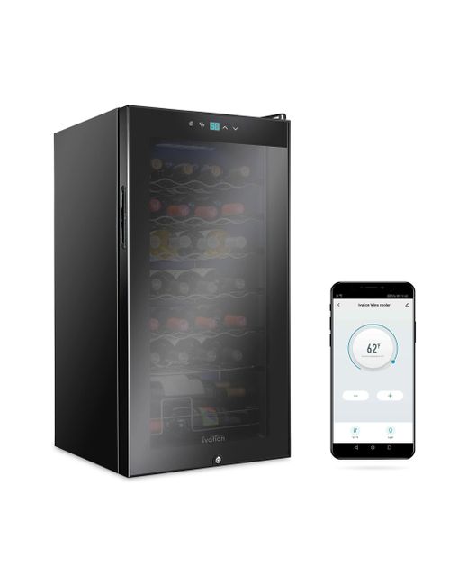 This product is the next best thing to having a small wine cooler in your home. Enjoy having wine fridge small where you can keep up to 28 champagne, white, or red wine bottles or other of your preferred luxury drinks. The advanced compressor cooling system of the countertop wine fridge delivers the optimal environment for those special vintages, preserving their unique flavor and delicacy. This wine refrigerator freestanding includes the My Ivation app to monitor & adjust your wine's temperature from your smartphone. For Wine & Champagne Bottles - The wine refrigerator small Holds 28 standard 750ml bottles Complete Control From Your Smartphone - View the temperature of your wine and adjust it if needed Temperature Settings - Selectable Fahrenheit or Celsius Removable Racks - Rearrange the shelves to accommodate varying bottle sizes Ivation Compressor Technology - Ensures temperature is not affected by outside heat sources Soft Interior Lighting - Turn on the energy-efficient LED light to illuminate your collection Secure with Built-In Lock - Two keys are provided for your convenience Easy-to-Use Touch Controls - Adjust the temperature and the light by tapping the digital display Unique Uniform Air Circulation - Operates quietly while circulating air evenly throughout the unit Sturdy Seal & UV-Resistant - Dual-pane glass door seals tightly to maintain the ideal temperature SPECIFICATIONS Length: 17.7" x Width: 16.9" x Height: 33.1". Misc Lsd Dept - Home Leased Mp > Ivation > Saks Fifth Avenue > Barneys. Ivation. Color: Black.