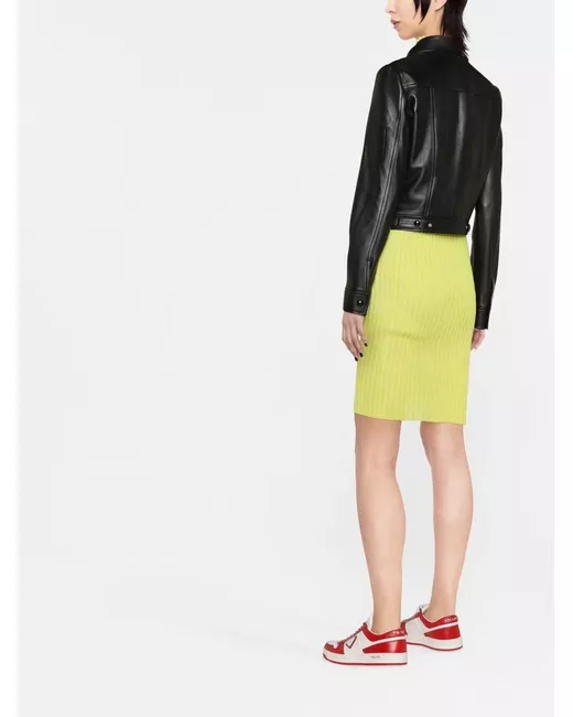 black leather classic collar front press-stud fastening long sleeves two chest flap pockets two diagonal pockets to the sides embroidered logo