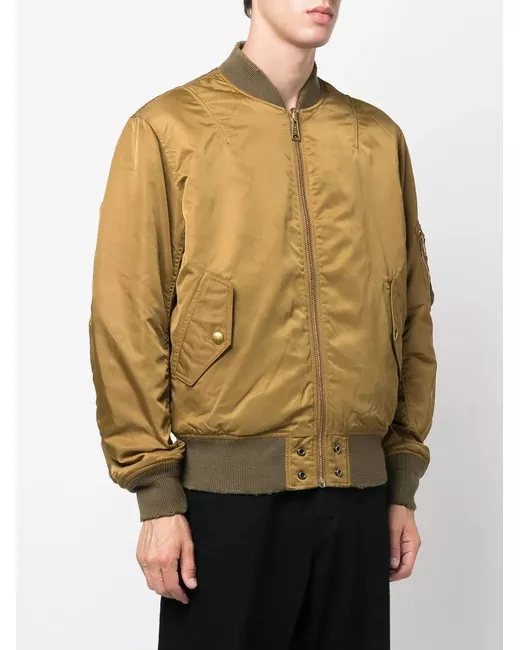 khaki front zip fastening logo patch at the sleeve sleeve zip pocket two diagonal pockets to the sides