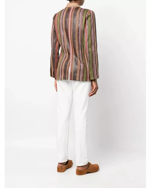 multicolour cotton blend vertical stripe pattern peak lapels side tie fastening long sleeves straight hem