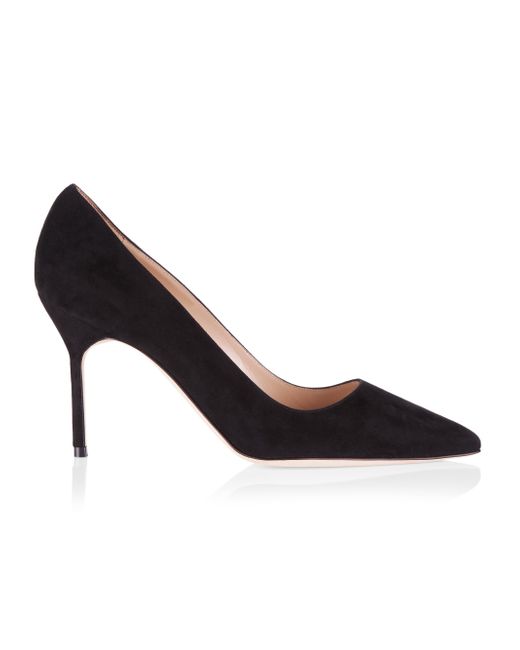 Made in Italy of supple suede, Manolo Blahnik's Sue pumps are framed with a flattering pointed toe and stiletto heel. Suede upper Point toe Slip-on style Leather lining Leather sole Made in Italy SIZE Suede-covered stiletto heel, 3.5" (90mm). Women's Shoes - M Blahnik Womens Shoes > Manolo Blahnik > Saks Fifth Avenue > Barneys. Manolo Blahnik. Color: Black. Size: 8.5.
