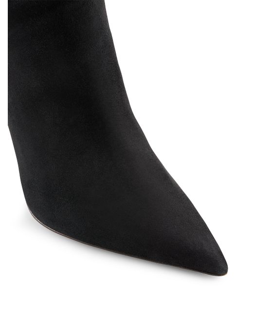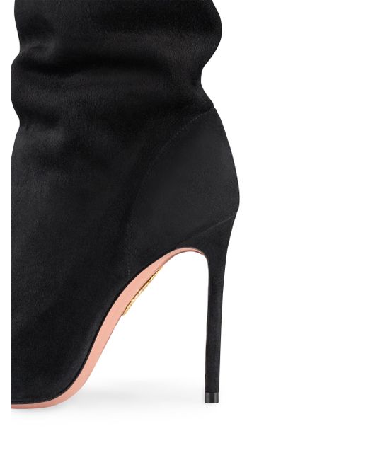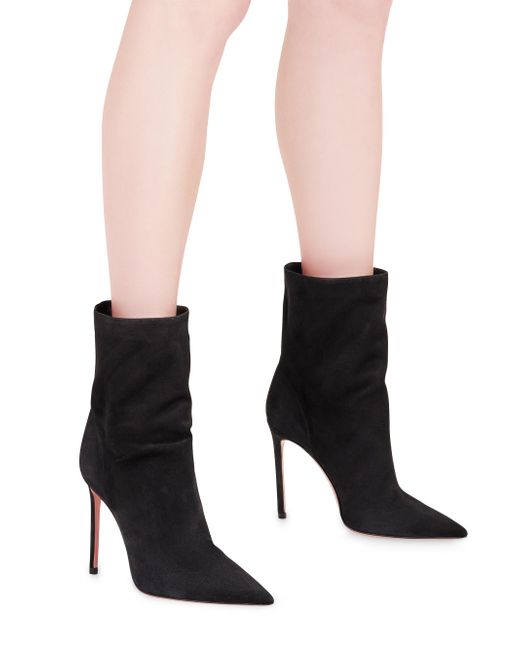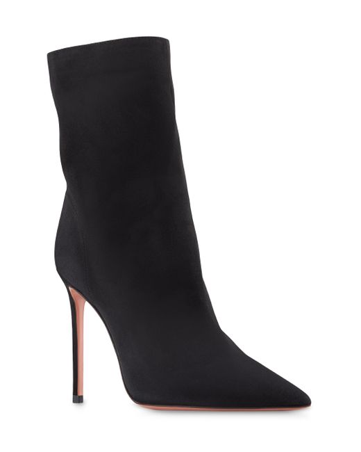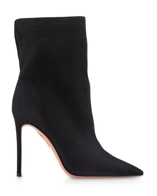 Aquazzura's Matignon booties are crafted of smooth suede with a pointed toe. Suede upper Pointed toe Pull-on style Leather lining Calf leather sole Made in Italy SIZE Self-covered stiletto heel, 4.25" (105mm). Women's Shoes - Aquazzura > Aquazzura > Saks Fifth Avenue > Barneys. Aquazzura. Color: Black. Size: 8.5.