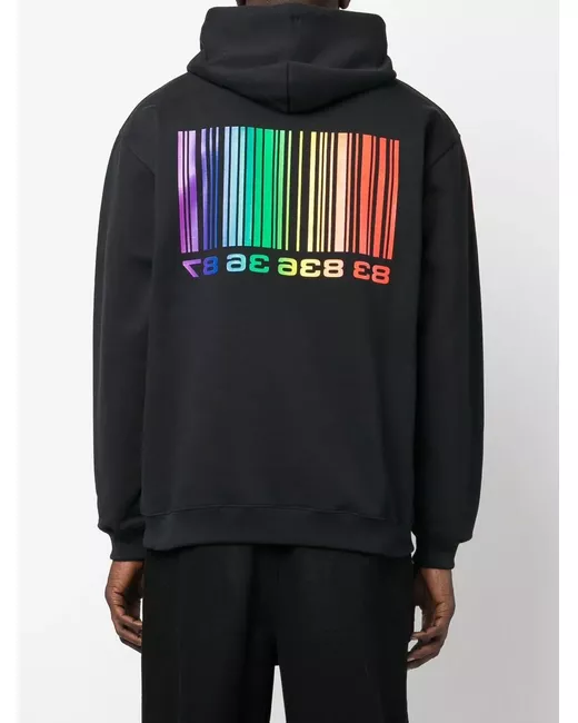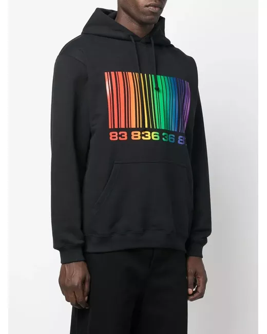 black/multicolour cotton blend barcode print drawstring hood long sleeves front pouch pocket When buying this unisex item, keep in mind that it is graded in standard men's sizing.