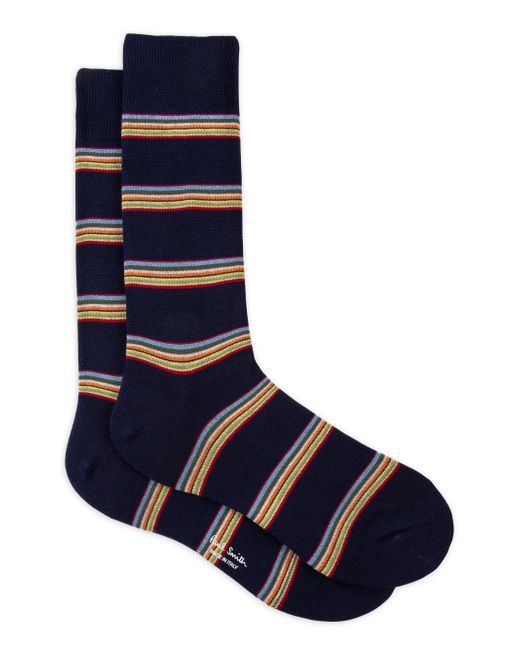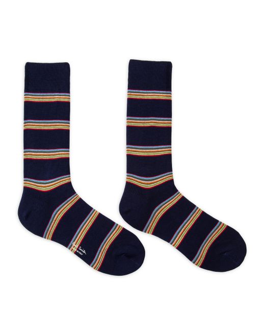 Paul Smith's Multiblock socks are crafted of a cotton blend and adorned with a rainbow colorblock striped design. 70% cotton/ 28%nylon/ 2% elastane Machine wash Made in Italy. Men Accessories - Hosiery > Paul Smith > Saks Fifth Avenue > Barneys. Paul Smith. Color: Black.