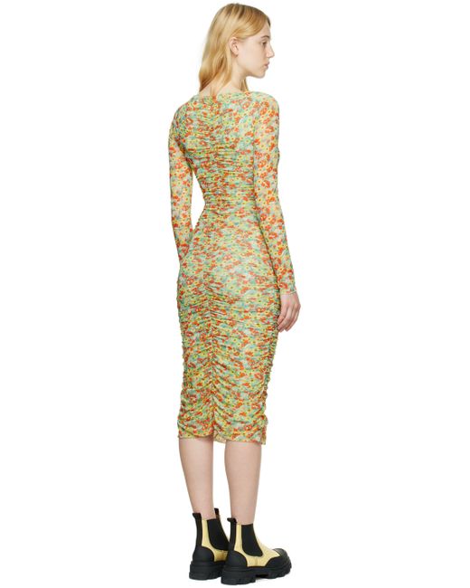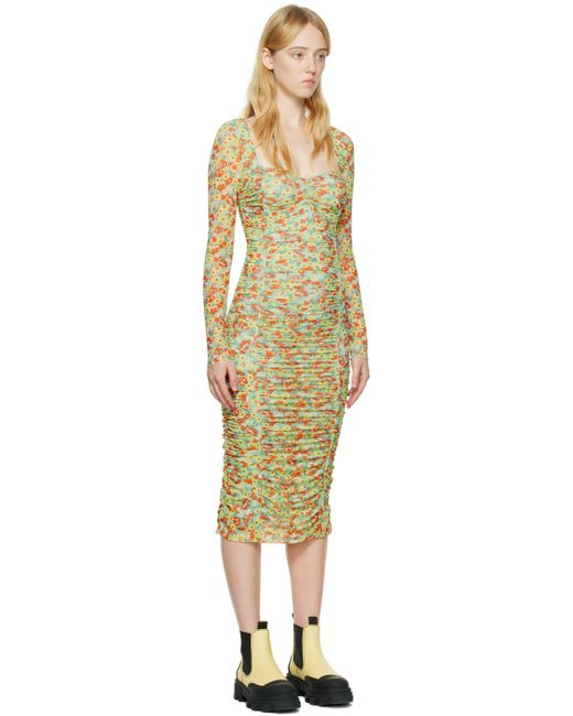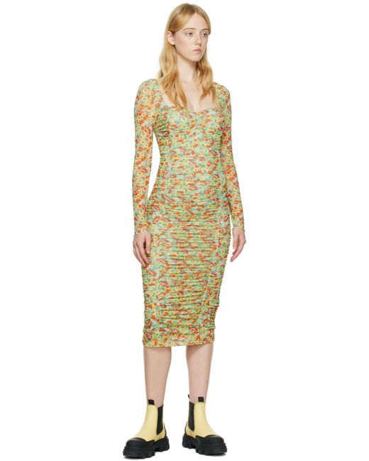 Stretch nylon mesh dress. Ruching and floral pattern printed throughout. · Sweetheart neck · Full mesh lining Supplier color: Meadow celadon green