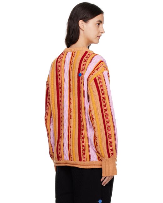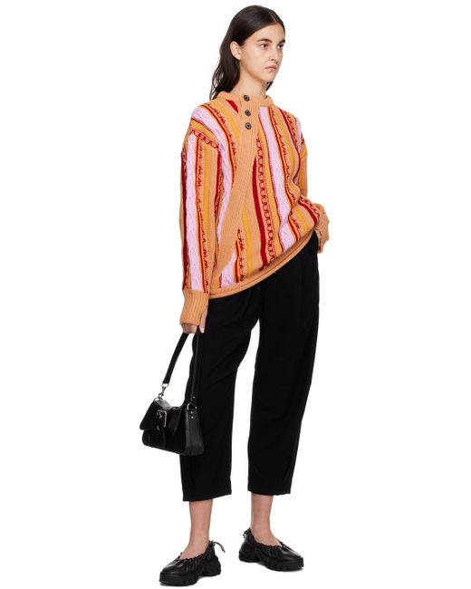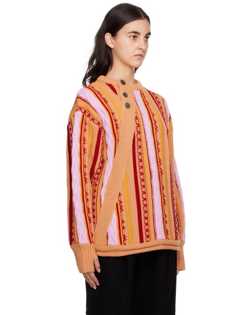 Knit wool-blend sweater. · Rib knit crewneck and cuffs · Offset three-button placket · Rolled edge at hem · Textile logo patch at sleeve · Thumbhole at cuffs · Leather logo flag at back Supplier color: Orange