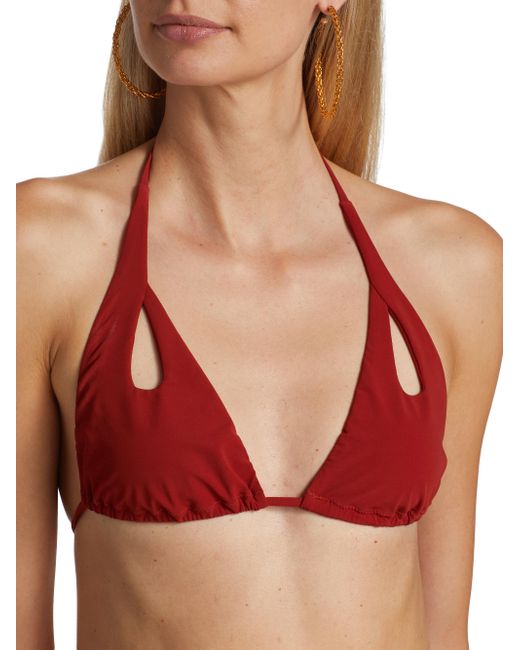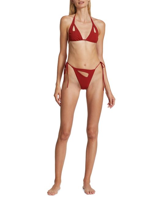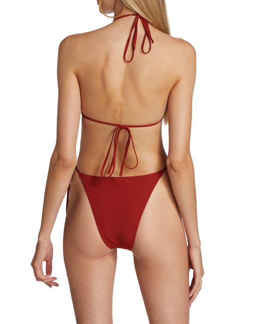 The Rua bikini from Palmiza showcases contemporary design and precise tailoring with a triangle halter top and matching high-leg string bikini bottoms. This Italian-made swim set is complete with teardrop cutouts on each piece. Triangle halter top High-leg string bottoms Cut outs 73% polyamide/27% elastane Hand wash Made in Italy SIZE & FIT Model measurements: 5'10" tall Model is wearing a US size Small. Corp Merch Planning - Seasonal Initiatives > Palmiza > Saks Fifth Avenue > Barneys. Palmiza. Color: Terra Rossa. Size: Medium.