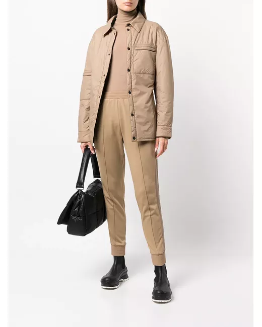 sand beige padded design classic collar zip-fastening chest pocket drawstring waist front button placket front press-stud fastening drop shoulder long sleeves buttoned cuffs curved hem