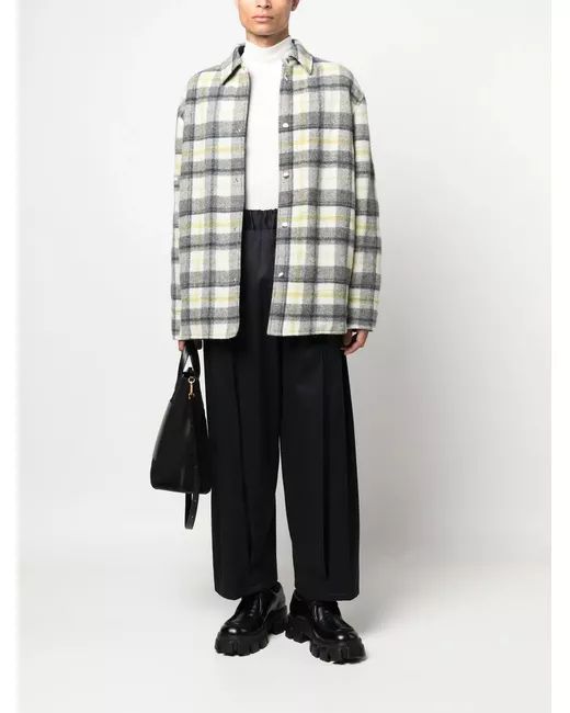 multicolour alpaca wool-blend check pattern embroidered logo at the sleeve front press-stud fastening classic collar long sleeves press-stud fastening cuffs straight hem
