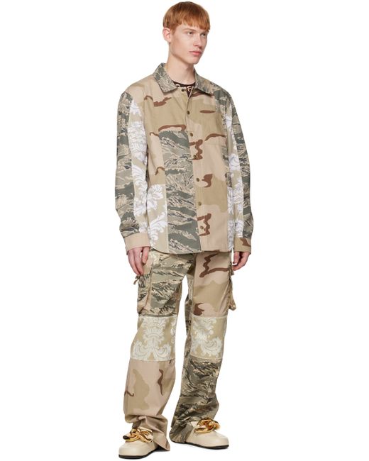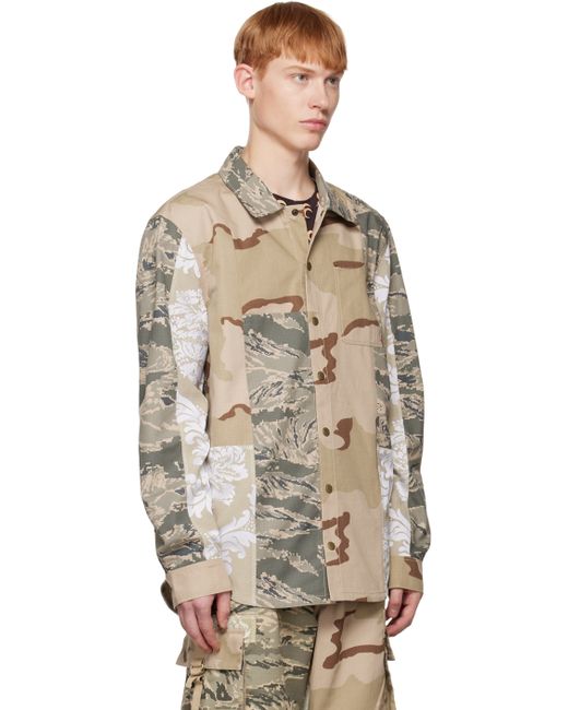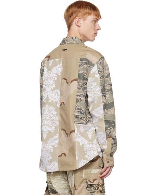 Deadstock cotton ripstop and damask jacket. Floral and camouflage pattern throughout. · Paneled construction · Spread collar · Press-stud closure · Patch pocket at chest · Shirttail hem · Press-stud fastening at cuffs · Logo appliqué at back yoke · Logo-engraved antiqued gold-tone hardware · Contrast stitching in white Supplier color: Beige
