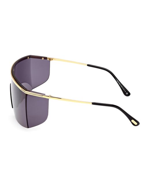 Tom Ford's semi-rimless shield sunglasses are designed with a straight brow bar and side blockers. Made in Italy, this pair is finished with an understated logo on the lens. 100% UV protection Smoke lenses Case and cleaning cloth included Metal Made in Italy SIZE 115mm temple length. Soft Accessories - Sunglasses > Tom Ford > Saks Fifth Avenue > Barneys. Tom Ford. Color: Shiny Gold.